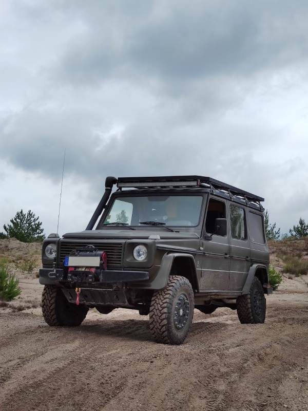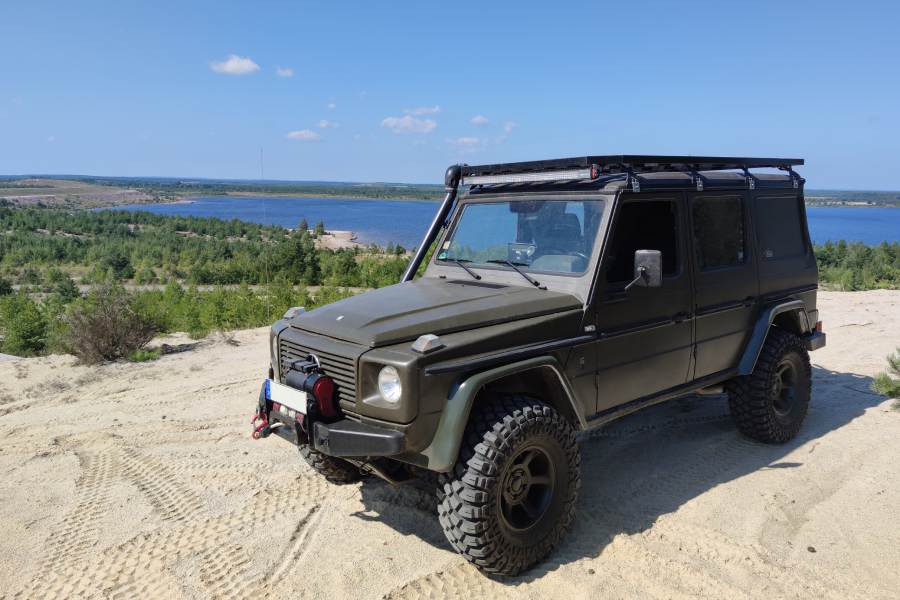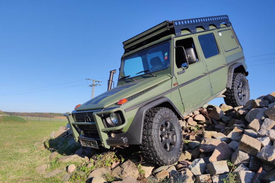 Die G-Klasse zeichnet sich durch ihre robuste Konstruktion und ihre Fähigkeit aus, extreme Geländebedingungen zu bewältigen. Das Fahrzeug verfügt über ein steifes Leiterrahmen-Chassis, drei Differenzialsperren und ein herausragendes Allradsystem, was es zu einem der besten Offroad-Fahrzeuge auf dem Markt macht.